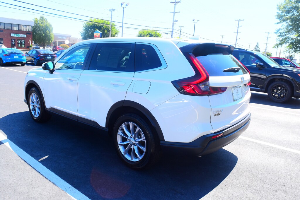 Honda True Certified. Clean one owner CarFax! 2025 Honda CR-V EX-L AWD CVT 1.5L I4 DOHC 16V AWD in Platinum White Pearl , 8 Speakers, ABS brakes, Adaptive Cruise Control: Adaptive Cruise Control (ACC) with Low-Speed Follow, Auto-dimming Rear-View mirror, Automatic temperature control, Blind Spot Information (BSI) System warning, Brake assist, Compass, Electronic Stability Control, Exterior Parking Camera Rear, Four wheel independent suspension, Front dual zone A/C, Fully automatic headlights, Heated door mirrors, Heated Front Bucket Seats, Leather Seat Trim, Leather Shift Knob, Leather steering wheel, Memory seat, Outside temperature display, Power door mirrors, Power driver seat, Power Liftgate, Power moonroof, Power passenger seat, Power steering, Power windows, Radio: 320-Watt AM/FM/HD/SiriusXM Audio System, Remote keyless entry, Security system, Split folding rear seat, Spoiler, Steering wheel mounted audio controls, Traction control, Turn signal indicator mirrors, Wheels: 18" Sparkle Silver Metallic. Inspected, serviced and factory certified!